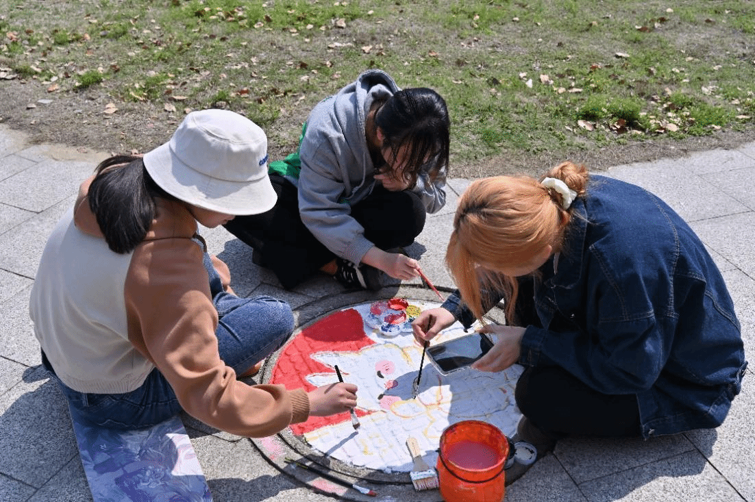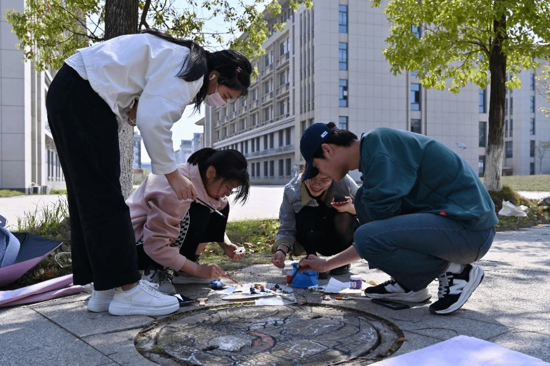 本次活动于培德桥南边至机械设计制造及其自动化工程实训中心中间思齐路举行。共有九个井盖,同学们分成九个团队,集体进行绘制。2022级新闻传播学专业魏云燕说:“此次活动不仅锻炼了我的绘画能力,还让我结识到了许多有共同爱好的小伙伴。”