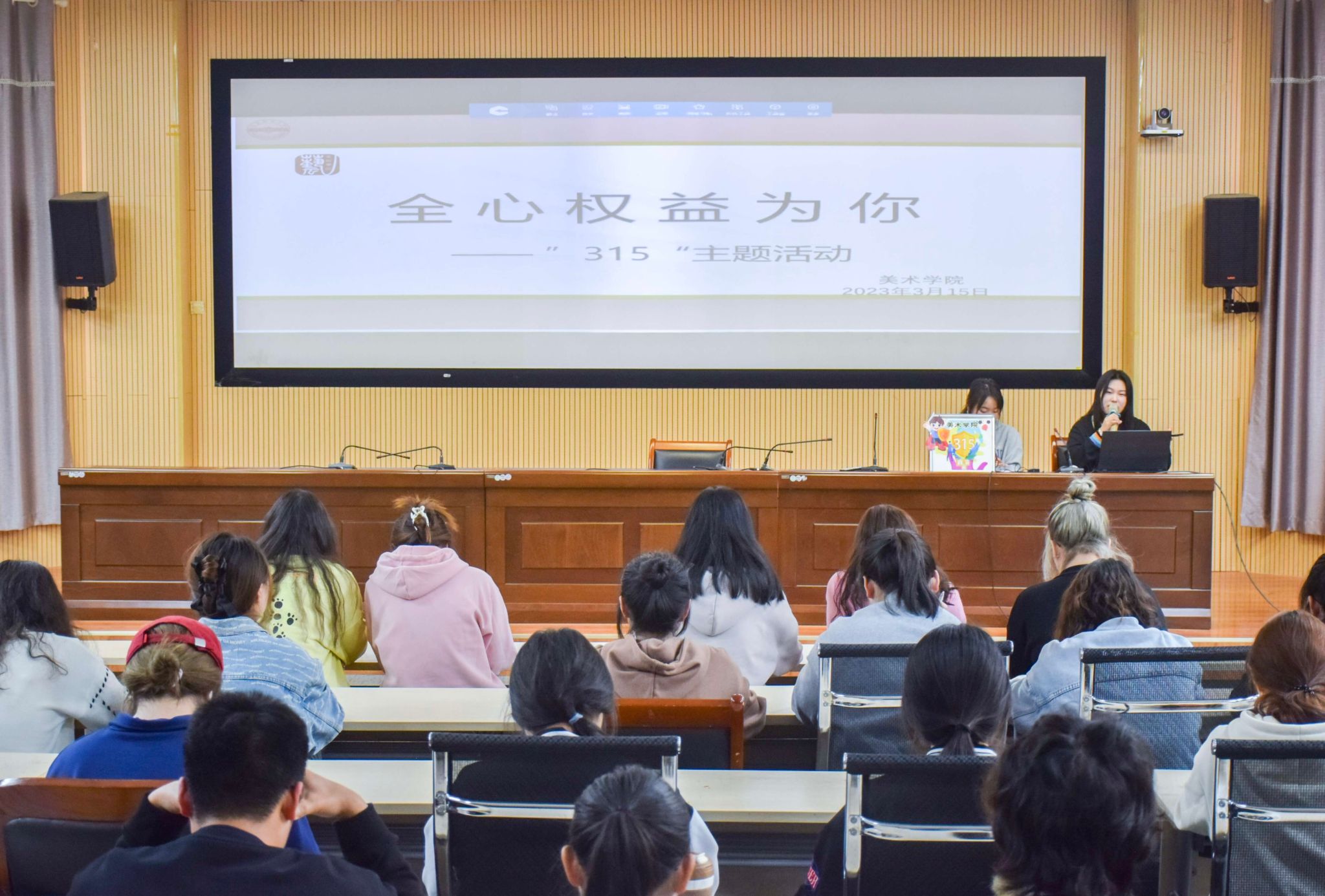在学院学术报告厅开展“3.15”消费者权益日主题活动,学生们围绕大学生权益问题开展相关交流讨论,通过普及消费者权益知识,帮助学生们深度了解消费者权益保护内涵,提升维权能力。