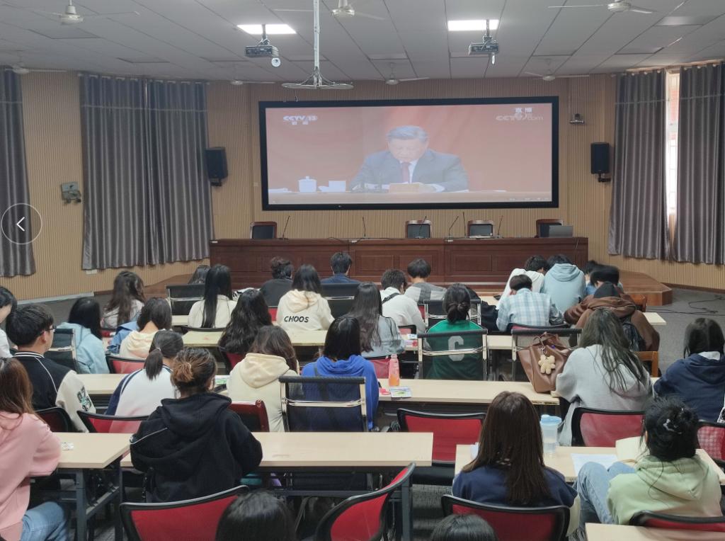 团委组织师生代表在学术报告厅观看大会现场直播,各团支部第一时间均通过线上线下、集中与分散相结合的方式收看大会盛况,认真聆听学习习近平总书记重要讲话精神,畅谈并提交心得感悟。