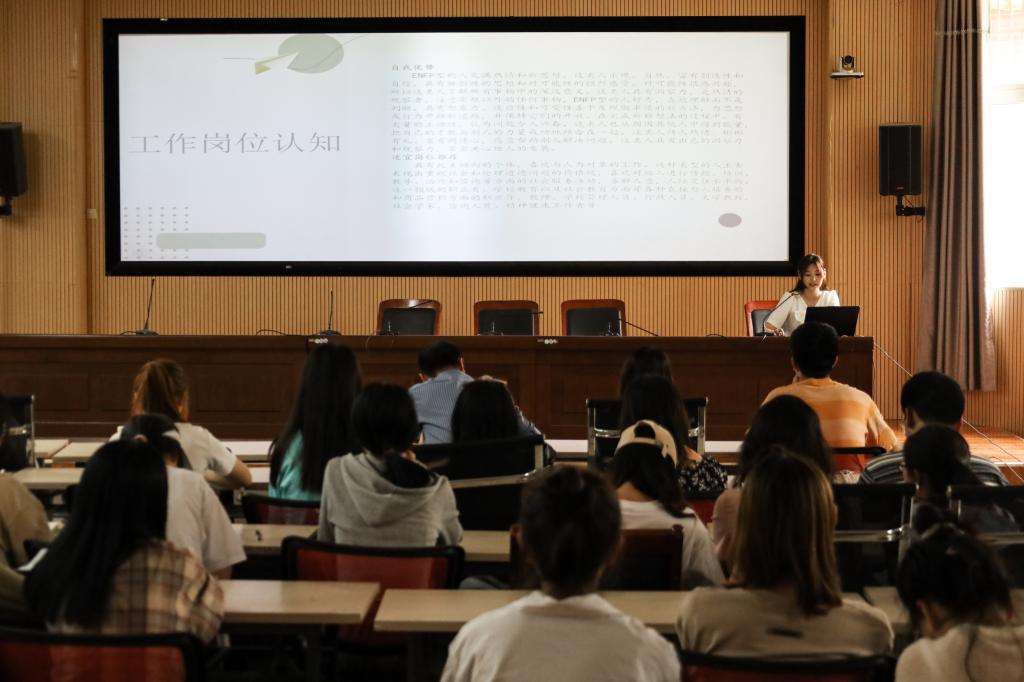 在该院学术报告厅举办大学生职业规划大赛院级选拔赛,学院党委副书记金忠良、团委负责人、辅导员老师出席会议担任比赛评委,100余位学生来到现场观看比赛。