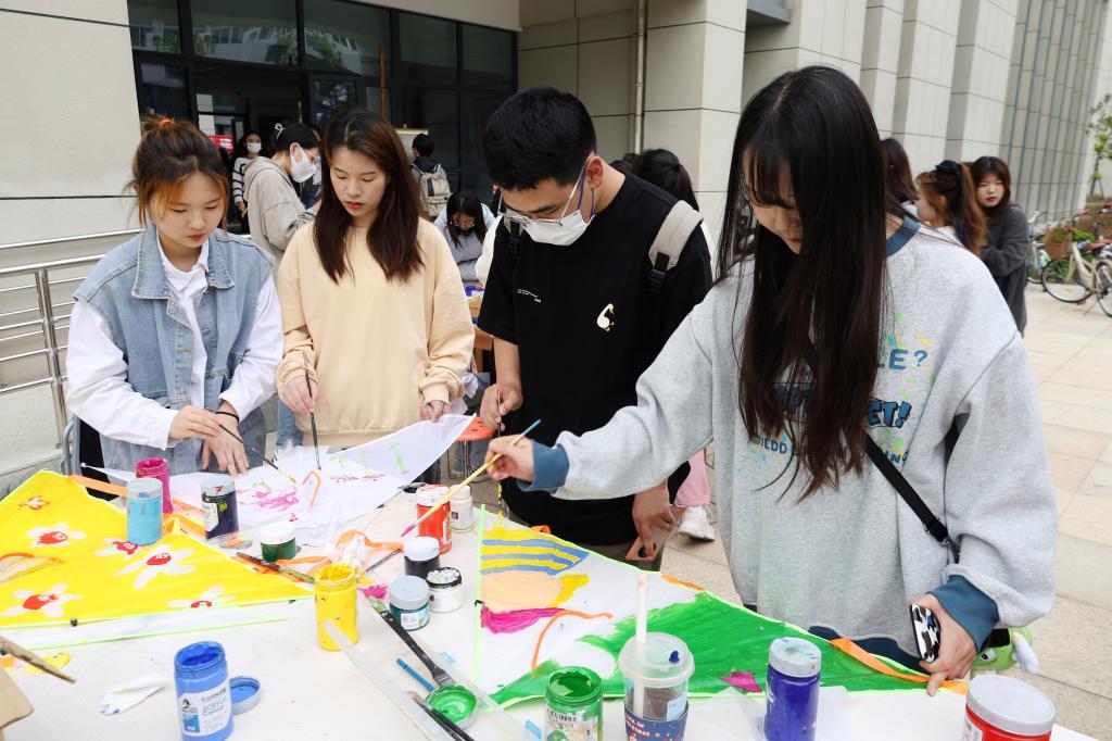选购多彩颜料、准备足量风筝、选择合适场地……活动负责人、美术学专业2020(3)班郭可莹所在的学生会部门早在半个月前就开始为活动做准备。“春天正是放风筝的好时节,我们想通过画风筝、放风筝为同学们提供一个学习交流、展示自己的平台,用创意拉近彼此距离,让灵感‘飞’上蓝天。”