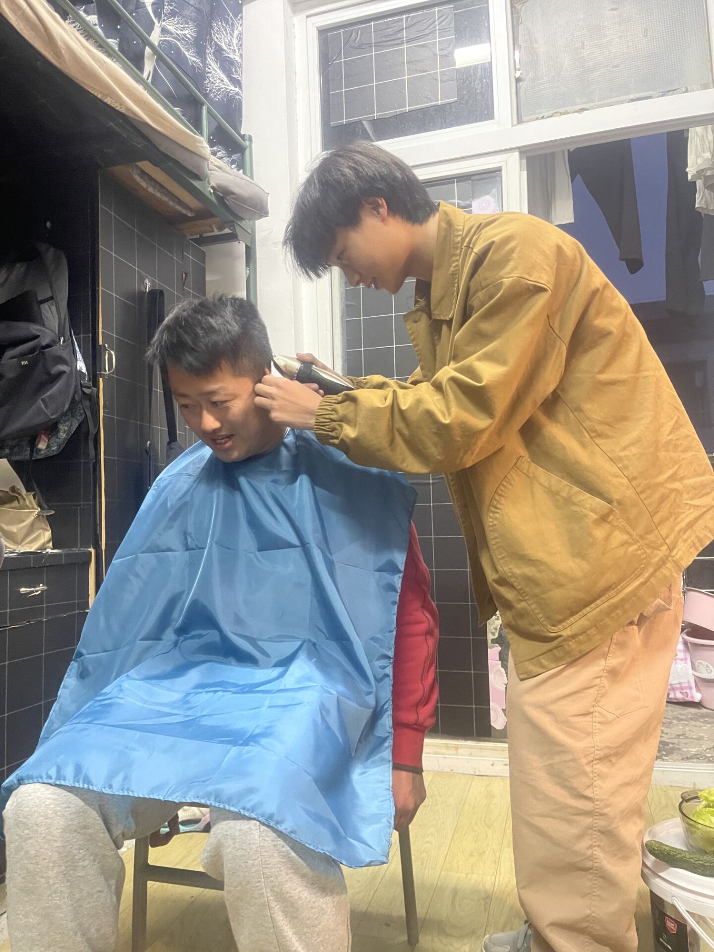 近日,设计学类专业2021(2)班的郭建彬成了班级的“名人”,原来,由于疫情形势发展严峻,学生请假外出理发不太方便,他便拿起了推子,为同学们提供无偿理发服务。