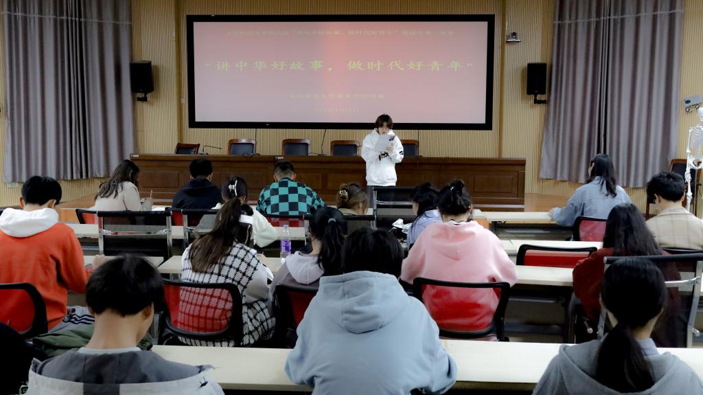 在学术报告厅举办“讲中华好故事,做时代好青年”演讲比赛,学院孟莉、郝弘毅、陈浩然三位老师担任比赛评委,54名选手参加学院角逐。