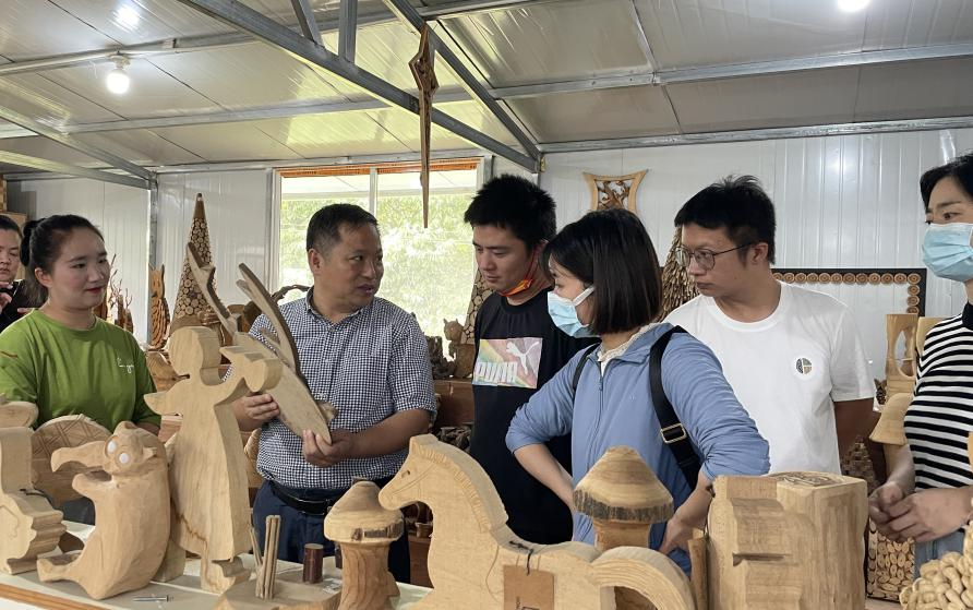 的党员教师与红方工艺品有限公司一起,针对木艺产品设计开展产学研合作,发挥数字创意的智力优势助力乡村企业发展,增加广大百姓收入。在服务好企业、服务好乡亲中,切实提升“我为群众办实事”能力,在知行合一中树牢正确党史观。