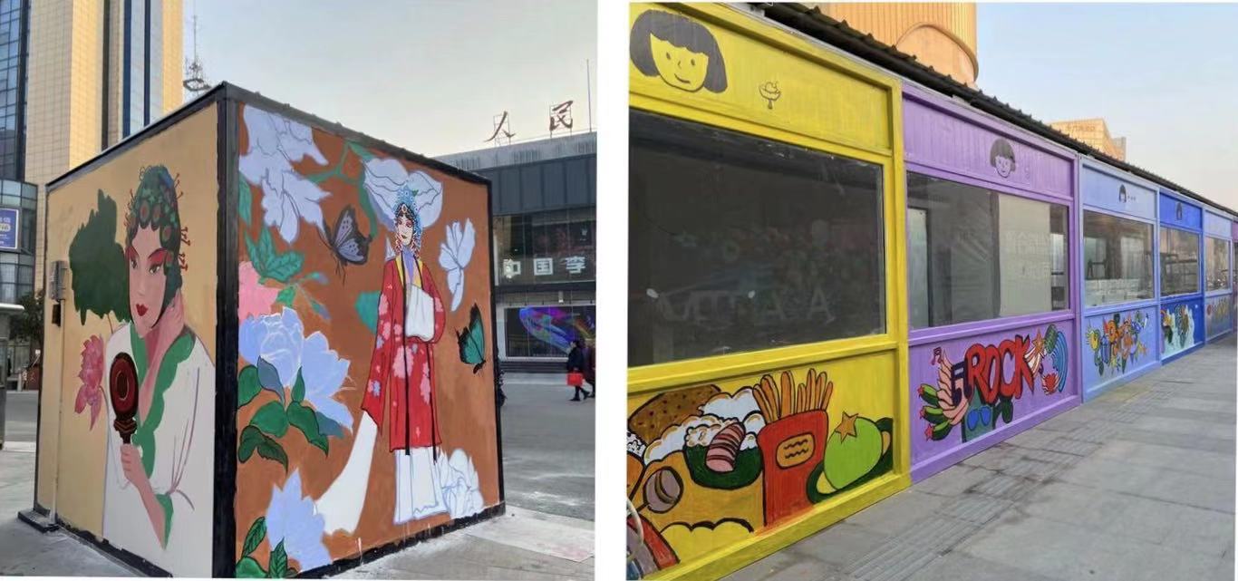 学生自主创业的《溢彩美术工作室》承接并完工了安庆市人民路步行街近一千平米的主题墙绘,为安庆市人民路近期正在进行的芯潮夜市创办和筹备工作增添异彩。