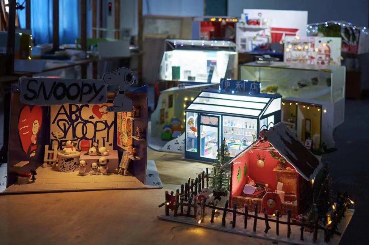 从创意设计到图纸落成,从采购物资到亲手制作,一件件作品经过不断打磨和填充从框架变成“实物”,网红便利店、“鲜生的笨蛋”鸡蛋店、动漫展、宝马4S店、OPPO手机展、梦想中的小城堡等作品栩栩如生、活灵活现。学生们纷纷表示,非常喜爱这样的课程形式,制作过程中多了很多思考和精心设计,自己的专业水平和动手能力都得到了很大提升。