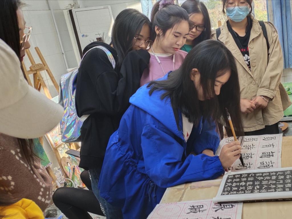 同学们通过聆听的方式,学习老一辈党员的成长经历与革命精神,纷纷表示一定会牢记父母长辈的叮嘱,努力学习,积极奋斗,为中华崛起而读书。为表达“党在我心中”,张璐、韩倩等同学现场创作书法作品,书写对党和国家的热爱。“书法作为中国传统文化艺术,具有不朽的蓬勃生命力,是中国华艺术瑰宝。”张璐说,“在这次‘四史’主题班会中,深入了解我党走过的峥嵘岁月,体会党在革命和奋斗中的艰辛历程,这坚定了我一定加强自身的专业素养,传承中华优秀艺术文化,这也是一种爱国、敬党的方法。”