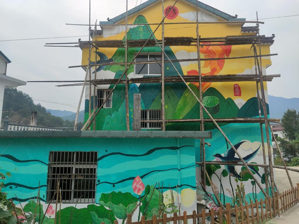近日,色情导航 环境设计专业和美术学专业8名学生在储玲玲老师的带领下,赴安庆市岳西县毛畈村开展了“千年古渡口,梦回袁家渡”的墙绘创作和实践活动。