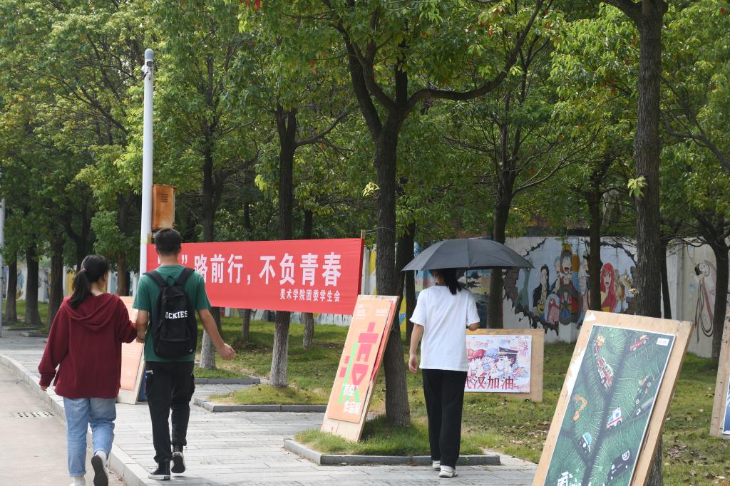 在龙山校区西门围墙处展出了37幅作品,其中包括全国大学生广告艺术大赛国家级省级获奖作品20余件。
