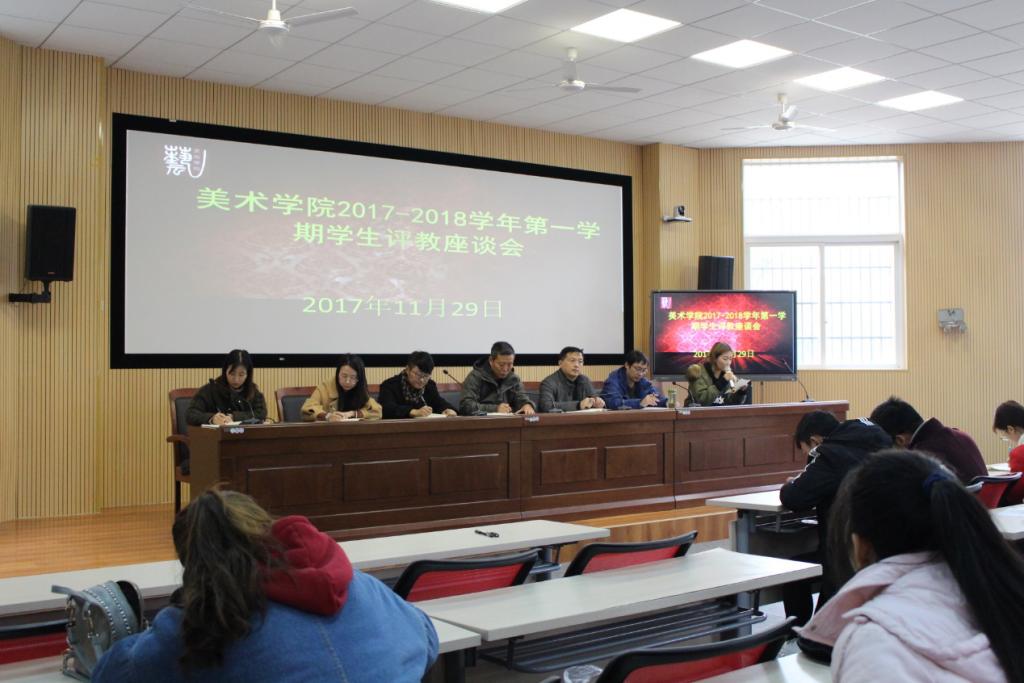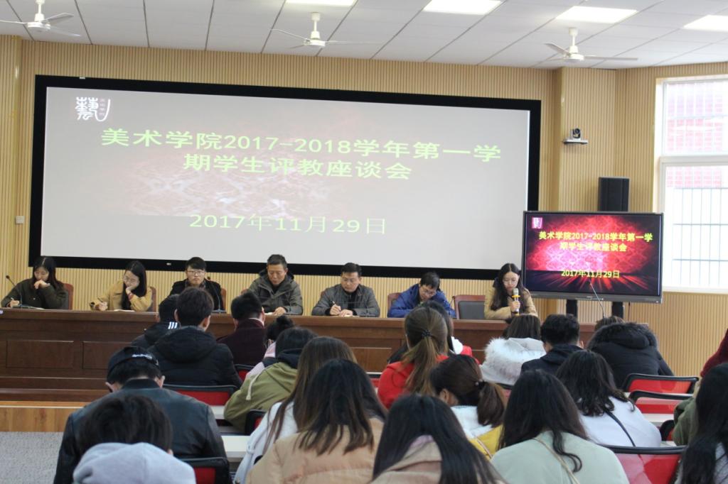 在美术楼八角厅召开了2017-2018学年第一学期期中教学质量学生评教座谈会,院党总支书记鲍硕来、副院长林柏峰、副书记许世平出席会议。学院青年教师代表郝弘毅、毛燕娟、陈云云等老师、各班级学生代表共60余人参加了会议。