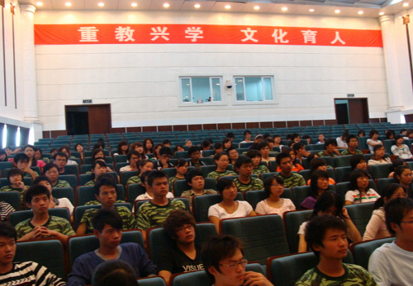专职辅导员戴先福就学生安全教育知识进行了培训。他从“防骗防火防盗、交通安全、饮食安全、人身安全、财物安全、住宿安全、工地安全、交友安全、上网安全、求职安全”等17个方面对2009级新生进行了安全教育,并例举出大量校园安全事故典型事例,要求同学们建立自我安全防范意识,增强自我保护能力,保障人身和财产安全。
