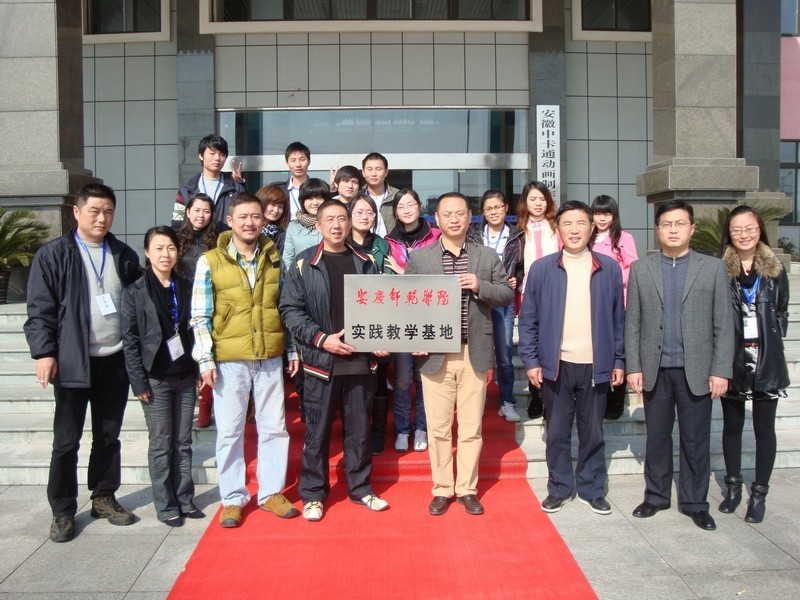 为寻求开辟动画新专业实习基地,积极推进校企合作,努力促进毕业生实习就业一体化,学院先后与广州、江西、山东、合肥等地动漫产业广泛联系,经过科学论证和实地考察,最后与安徽中卡通动漫制作有限公司(池州)签订合作协议。2010年7月12日,院长陈可、党总支副书记鲍硕来、动画专业教研室主任黄明带领学生骨干前往公司进行了全面考察,与公司初步达成合作意向;9月3日,学院召开2007级动画专业实习就业动员会,对学生集中实习进行了精心部署和安排;9月6日,学院将首届动画专业全体毕业生(30人)送往该公司进行为期3个月的集中实习,学院和公司均安排专人进行业务指导和规范管理;11月18日,学院领导班子到公司看望实习学生,召开实习学生座谈会,举行了授牌仪式。据了解,已有4名学生提前与该公司签订了就业协议。
