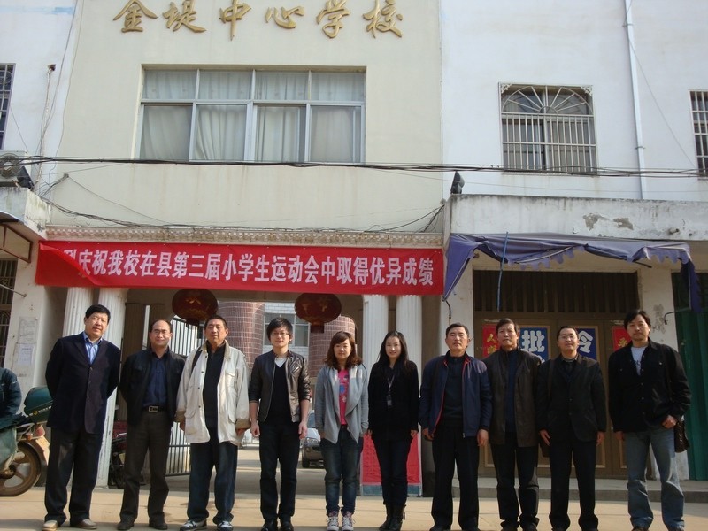 在金堤中心学校与支教的张鹏飞和学校领导合影(左四)