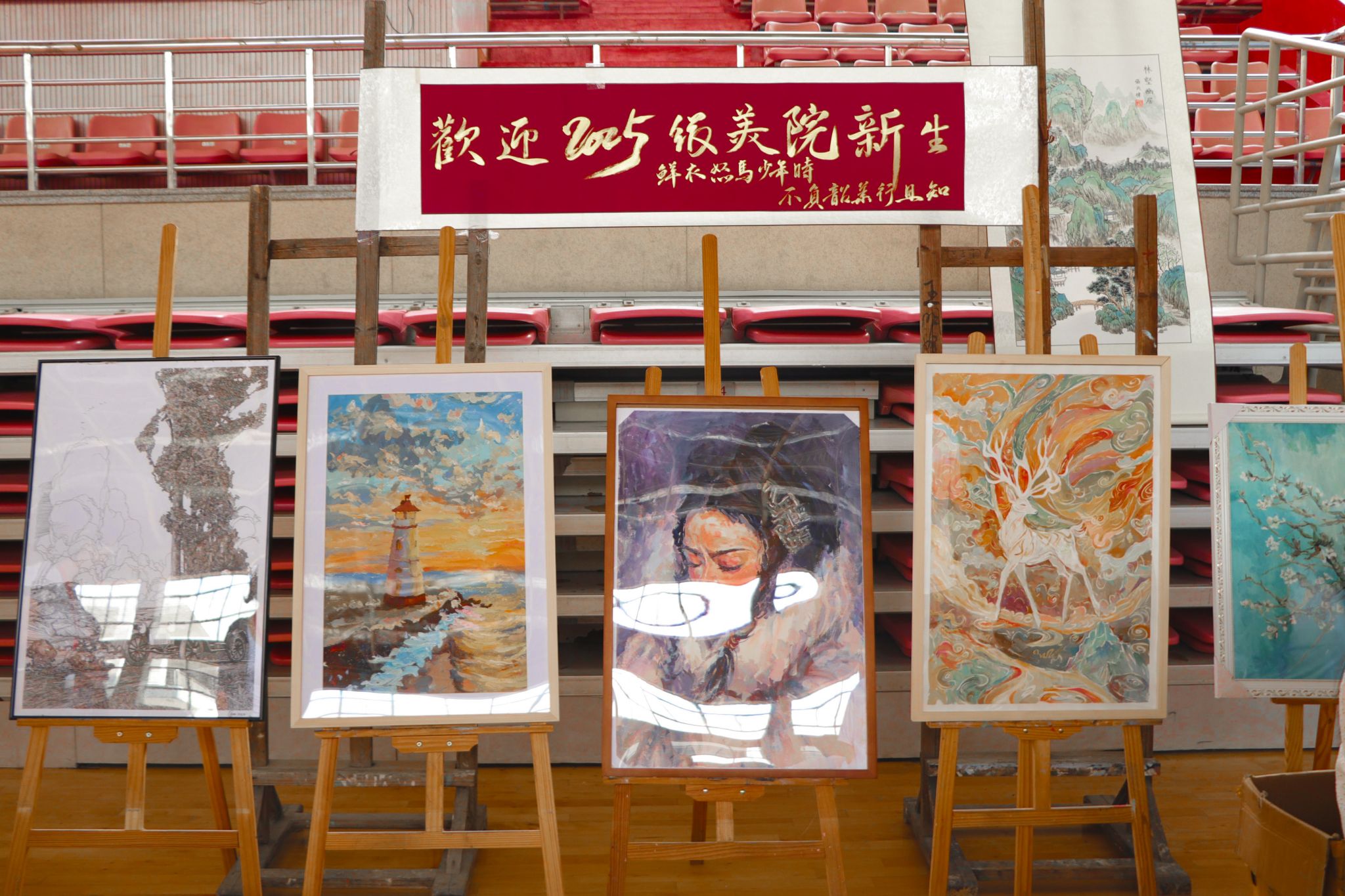 的迎新报到现场,签名KT板、新生作品展、祝福小挂件、主题横幅等花样迎新得到了2025级新生和家长们的点赞,“开学仪式感满满!艺术氛围也很浓!”新生们感叹道。