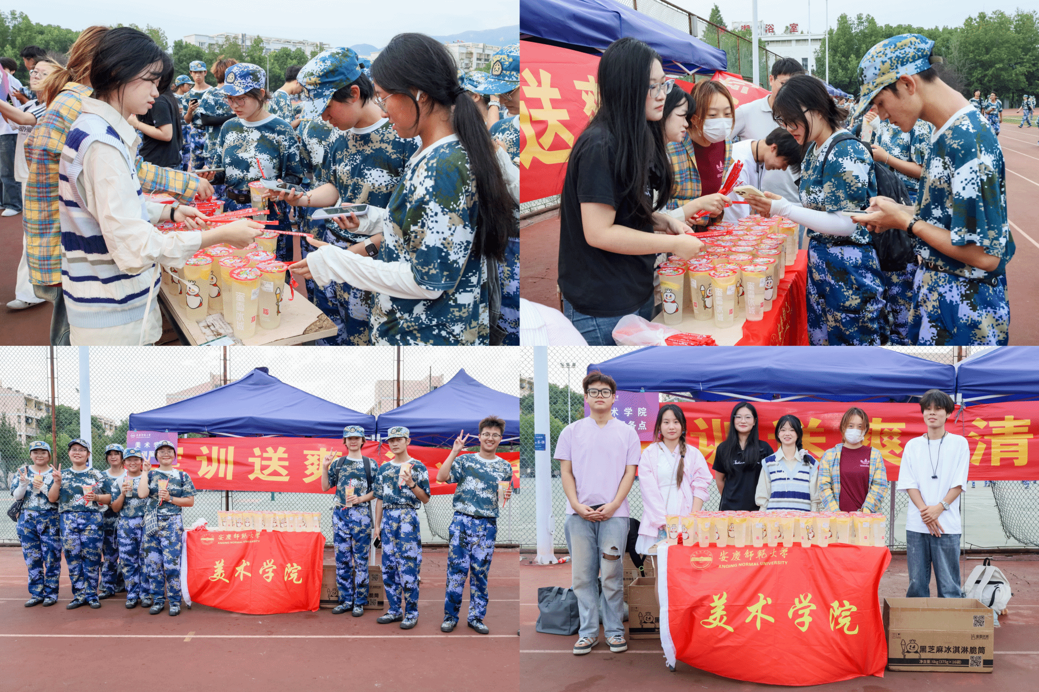 “没想到学院这么贴心!在训练最累的时候能喝到学长学姐亲手送的冰镇柠檬水,感觉瞬间‘满血复活’,训练也更有劲头了!”设计学类专业2025(2)班的管奕天直言收到饮品时既温暖又惊喜,一下子缓解了身体的疲惫。