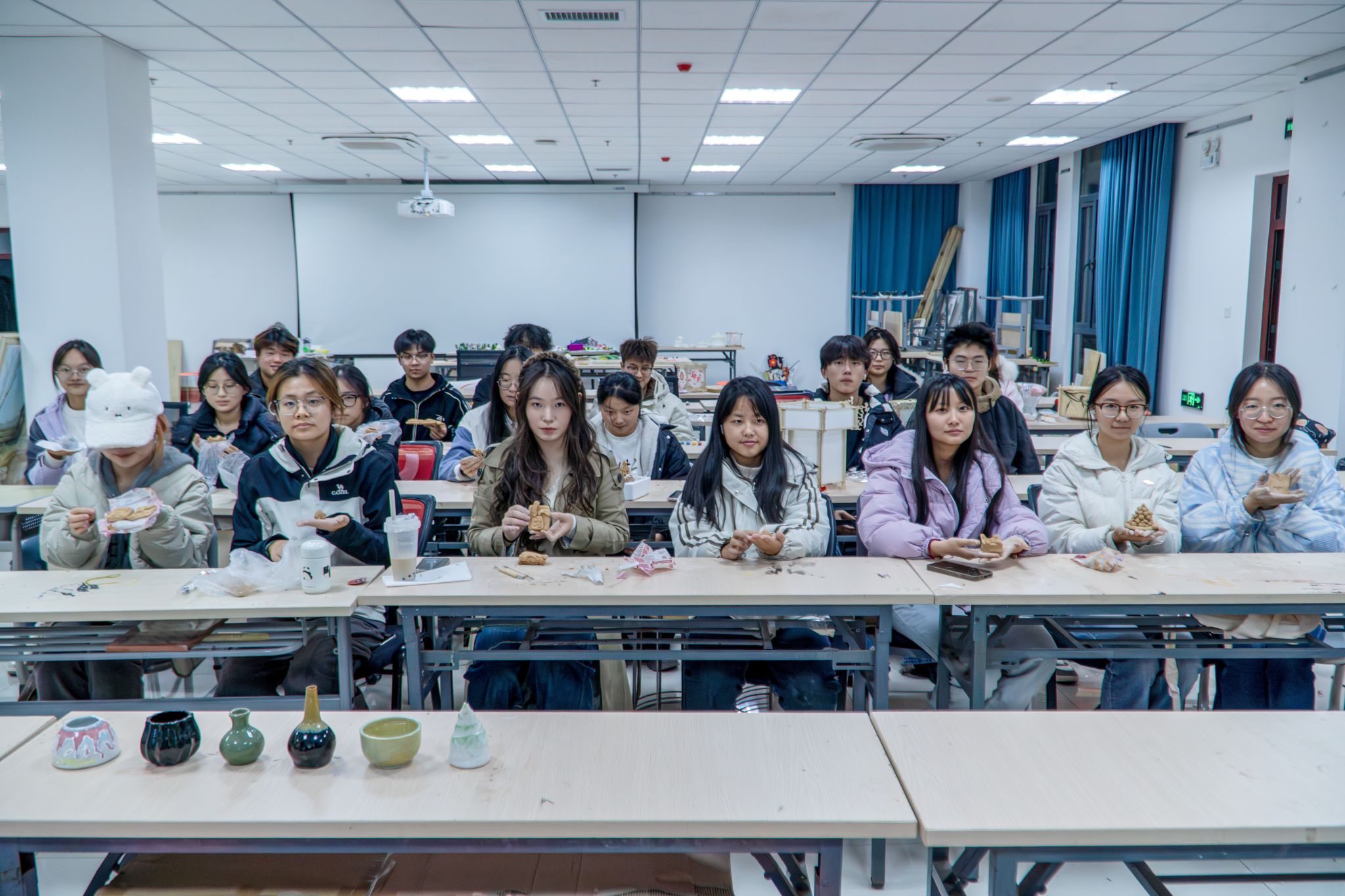 “虽然活动时间有限,但大家的创作热情丝毫未减。”陶艺俱乐部负责人、设计学专业2024(1)班的朱雨婷介绍,“完成初步造型后,大家可以把作品送到陶艺活动室,后续会进行烧制和上釉处理,让这些充满创意的作品真正成为可以留存的纪念。”她表示,陶艺创作不仅能让人静下心来释放压力,更能在与陶土的亲密接触中,感受传统技艺的温度。