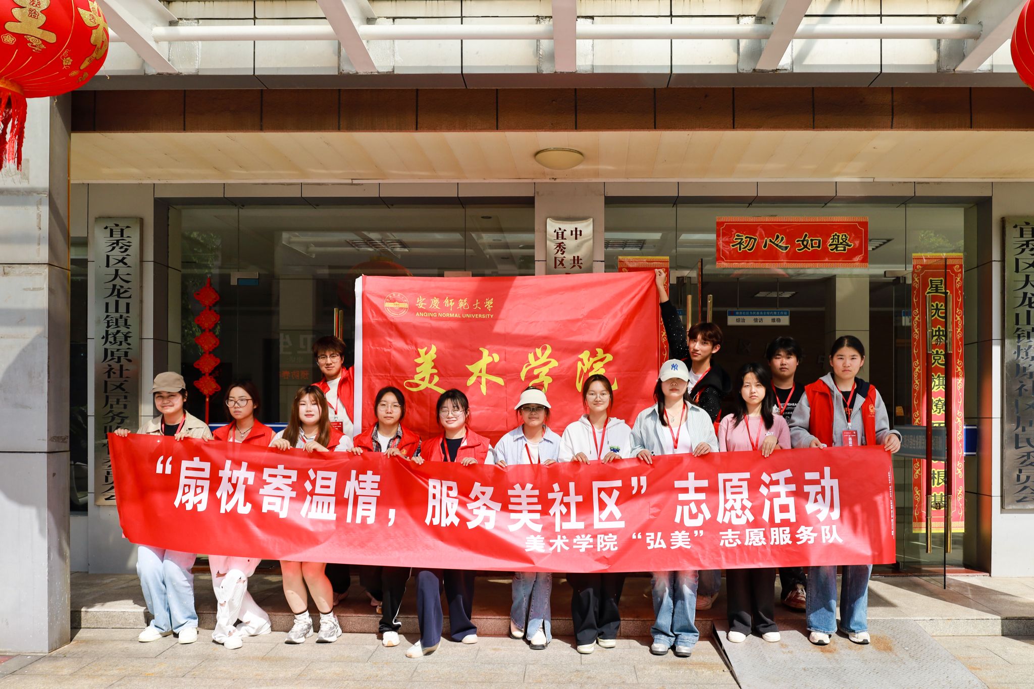 的“弘美”志愿服务队,以“扇枕寄温情,服务美社区”为主题在此开展志愿活动,以自制手工艺品慰问劳动者,用实际行动服务社区,在实践中体悟劳动价值。