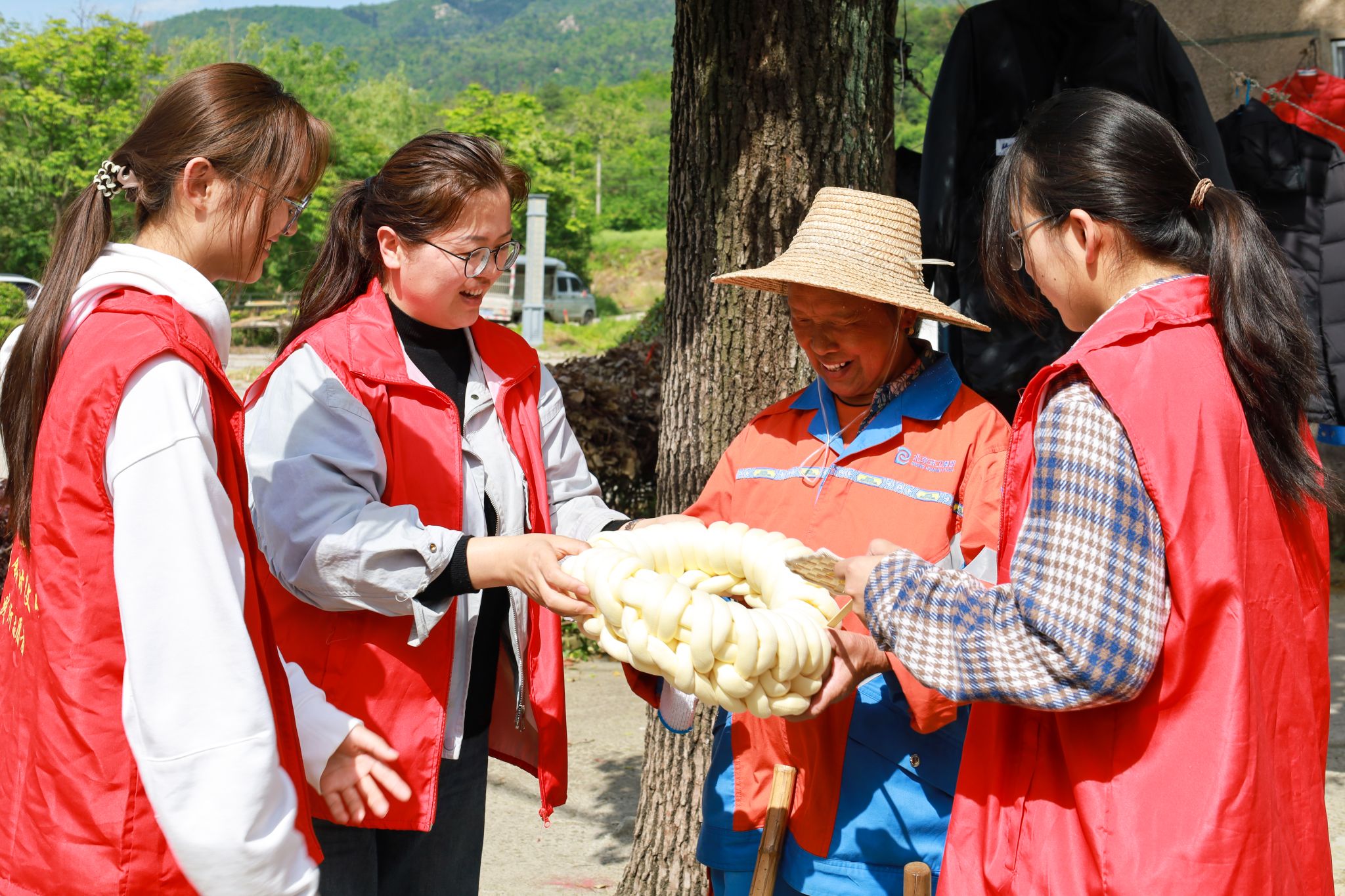 4月25日,在安庆市宜秀区大龙山镇燎原社区,一群身着红色志愿服的青年学子走进街巷、走向田间,将亲手制作的蒲扇与抱枕送到社区居民与劳动者手中,同步开展环境清洁志愿服务。这支来自色情导航