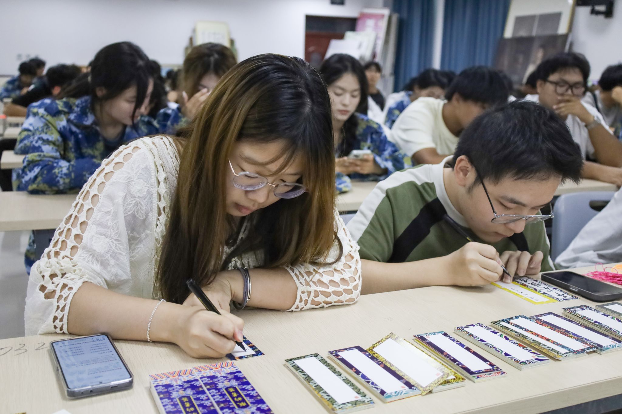 学生会的成员便着手准备本次活动。“我们精心挑选并采购了210多张精美的书签和五彩斑斓的流苏挂穗,并为每位参与学生准备了书法笔。”活动负责人、设计学类专业2023(1)班的董星晨表示,每位同学在现场书写完成书签后,都可以将其带走收藏,作为一份独特的青春纪念品。