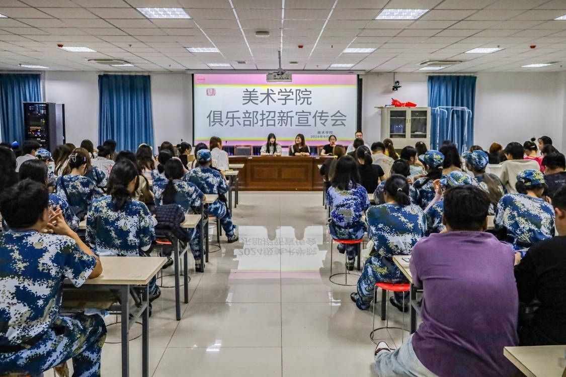 11个艺术俱乐部优秀作品在教室里惊艳亮相,11名俱乐部学生负责人面向2024级190名新生进行招新宣讲,各具特色的艺术作品引得众多新生“跃跃欲试”。