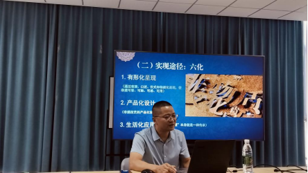严敬群在讲座中指出,不同的非遗项目一定要遵循区别对待的原则,有形化呈现、产品化设计、生活化应用、市场化推广、数字化传播、产业化发展是非遗融入现代生活的实现途径,要将非遗融入生活场景,融入旅游产业、赋能乡村振兴产业、文创产品开发等产业链之中, 不断满足人们对美好生活的需求。他结合安庆本土的非遗项目,以名人IP与旅游文创的开发、校企合作等为例,就艺术类师生如何深度挖掘、利用本土的文化元素,如何以多元化形式推动非遗与现代设计、当代艺术之间的多元融合进行了形象生动的阐述。他强调,从商业化为起点,以生活化为终点,让非遗成为生活的一部分是传承非遗的重中之重,也是激活非遗生命力的关键。