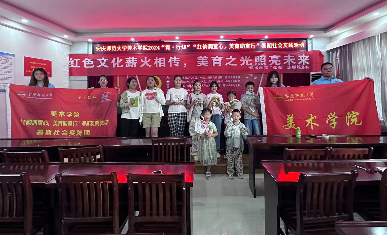 “红韵润童心,美育助童行”美育实践教学暑期社会实践团来到安庆市宜秀区大龙山镇中心社区委员会,结合专业优势开展美育教学,以美育浸润童心。