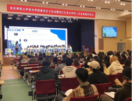 高俊松、向虎、倪静老师带领美术学专业2022 级全体学生 125 人,前往安庆市绿地实验学校,观摩学习美术公开课,学科美术教学的研究生同学一起参与了本次活动。