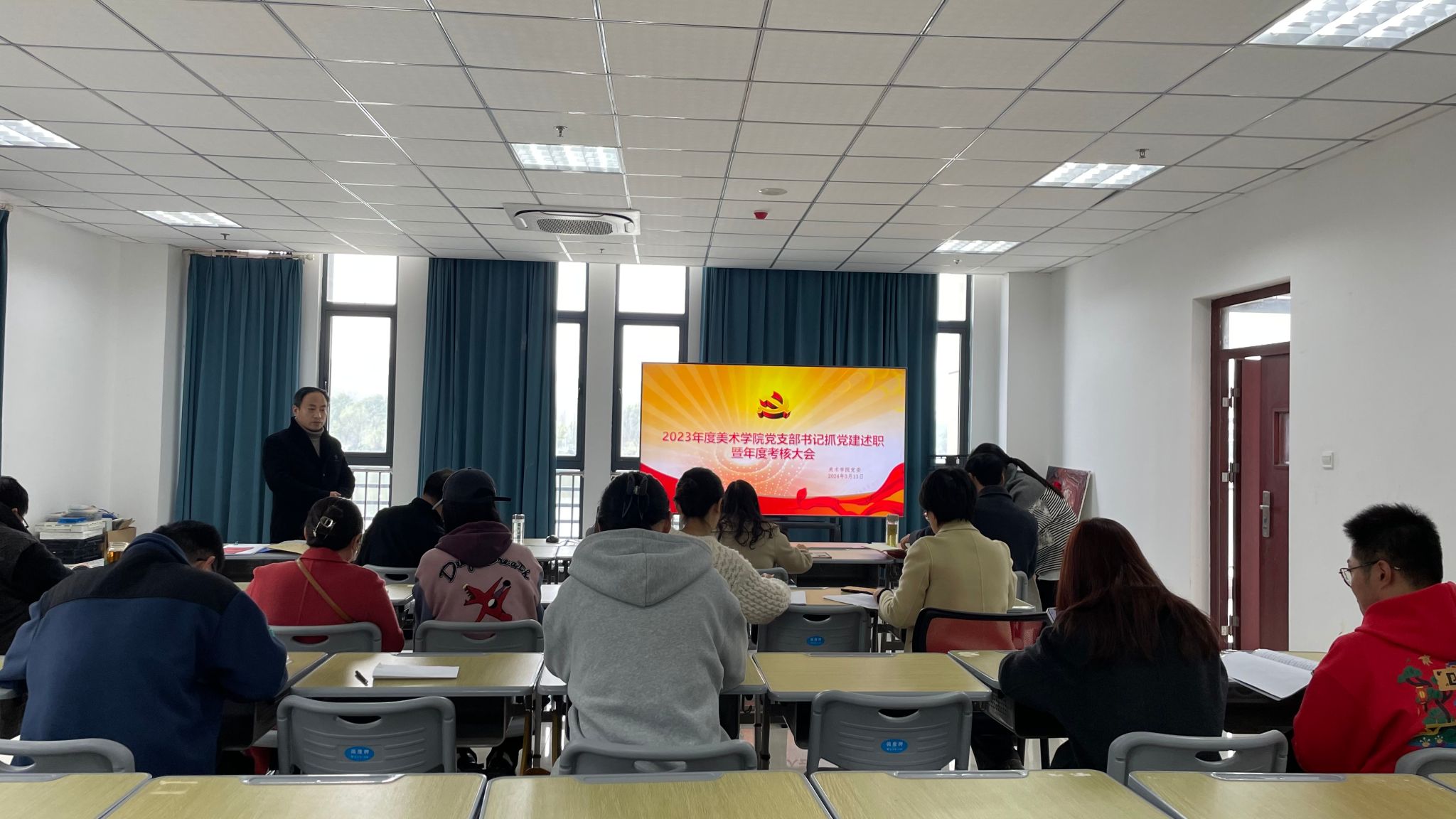 党委组织召开2023年度党支部书记抓党建工作述职评议会,学院党委委员、纪委委员、党支部书记、党支部委员以及学生代表参加了会议,会议由学院党委书记孙根华主持。