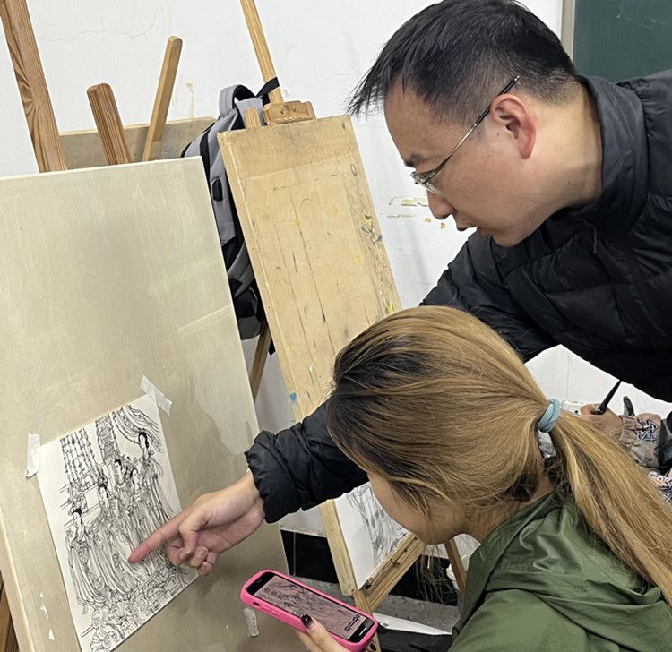 的专任教师王擎博士,每晚义务深入晚自习课堂进行绘画技法、构图等方面的专业指导。
