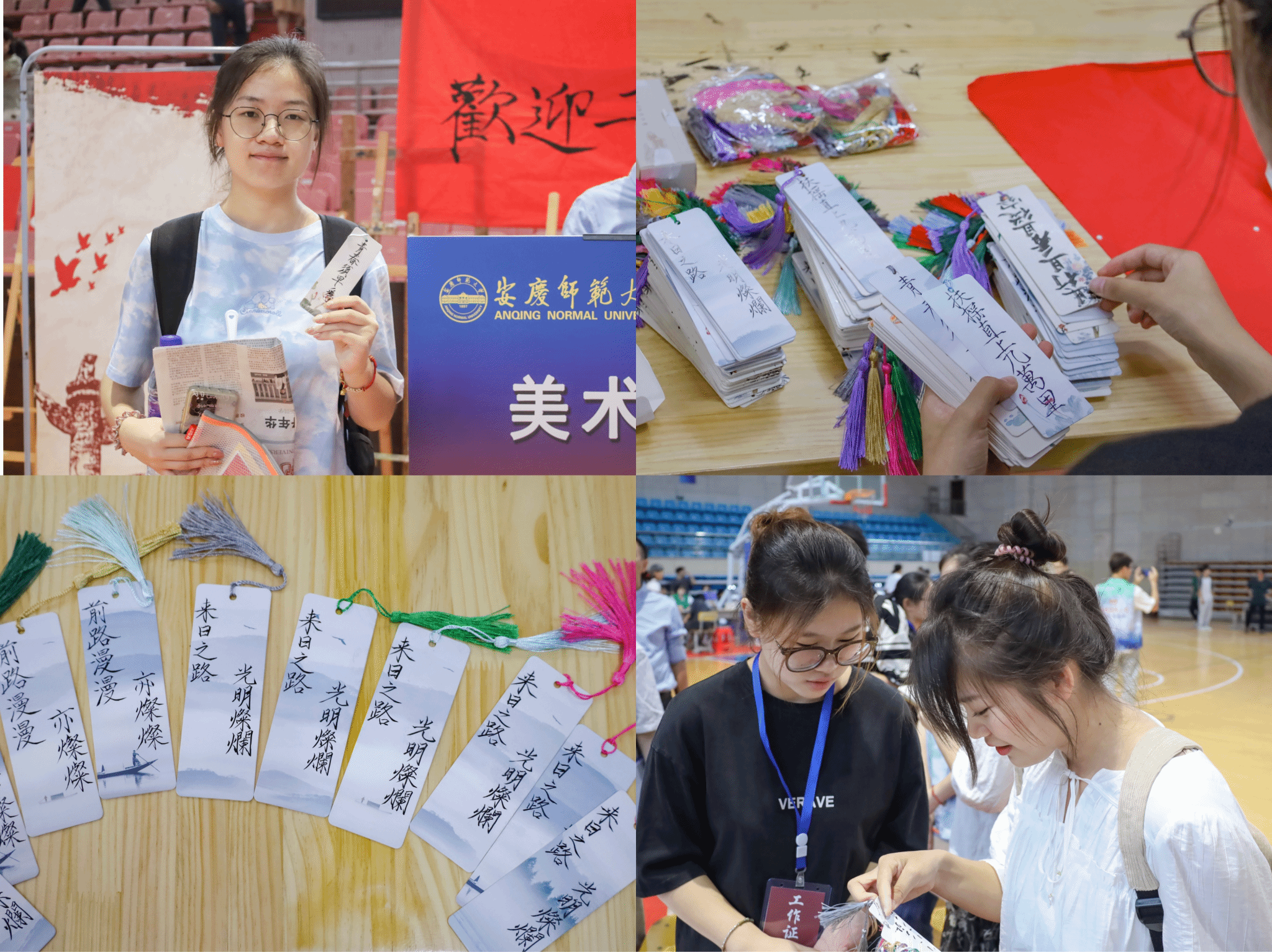书法俱乐部的50余名成员就开始筹划制作迎新礼物。在小小的活动室里,俱乐部成员们分工协作,互帮互助,认真负责完成每一道工序,为243名2023级新生每人准备了一张“独家”书签。
