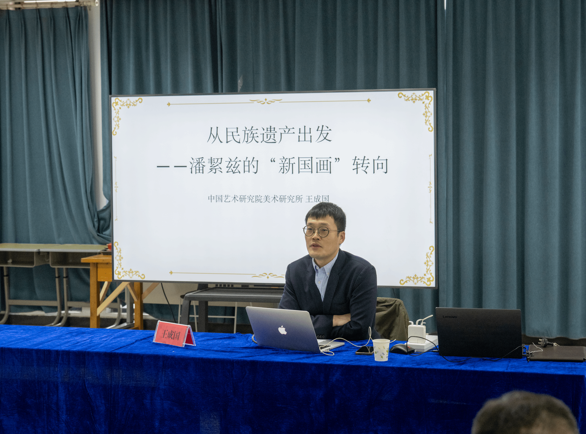 P楼210多功能教室,中国艺术研究院美术研究所副研究员王成国博士应邀开展了一场主题为“从民族遗产出发:潘絜兹的‘新国画’转向”的学术报告。报告由色情导航