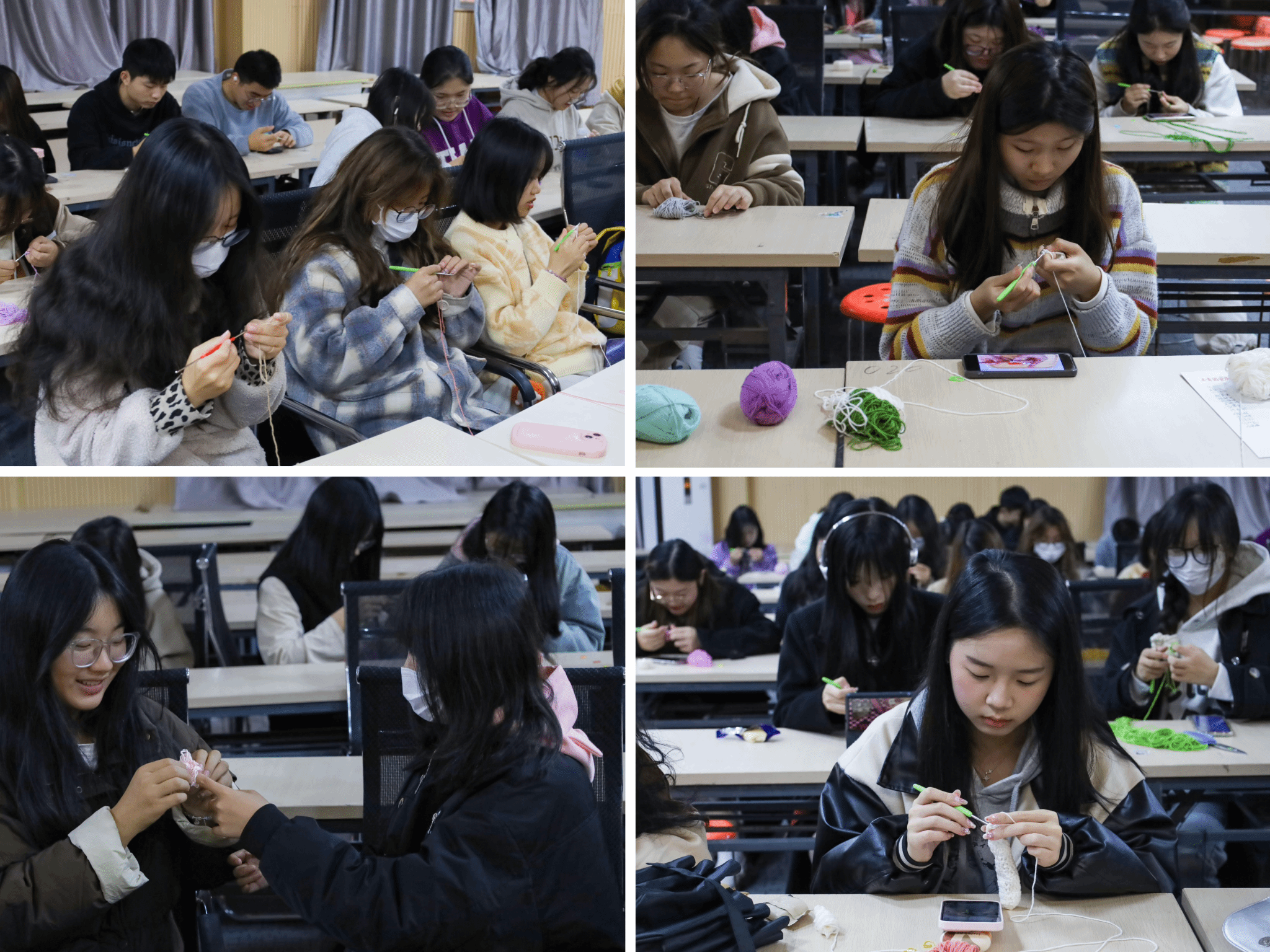 开展“我为同学做件事——制作门把手保暖外套”志愿服务活动,50余名学子齐聚学院学术报告厅,用各色毛线钩织门把手“保暖外套”,为教室送上冬日温暖。