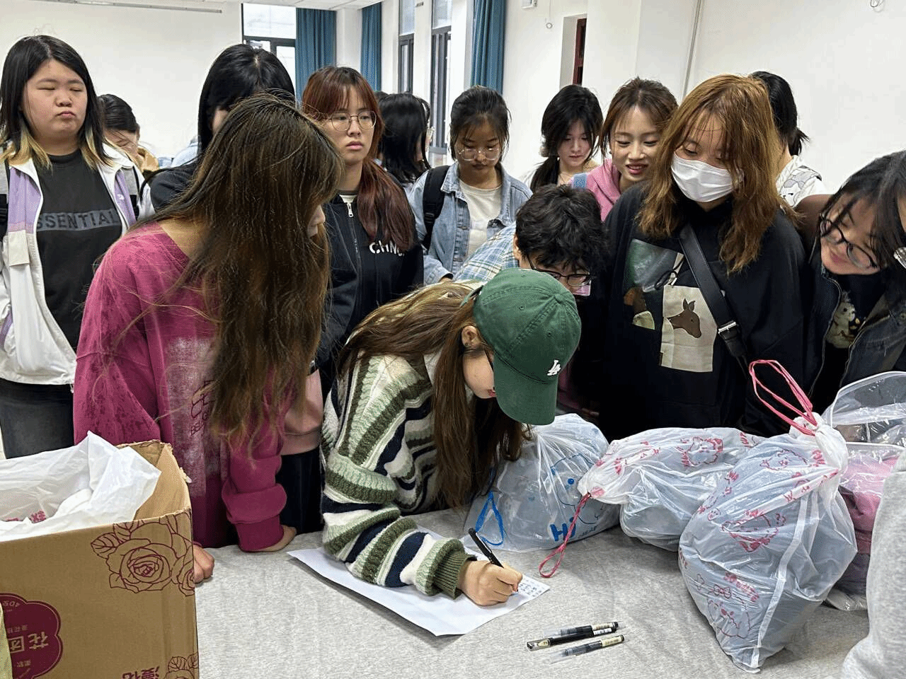 于新美术楼举办爱心捐衣活动,100余名学生携带清洗干净的旧衣物到现场登记捐赠。志愿者们将集中整理归类,再将这些衣物送给需要帮助的人。