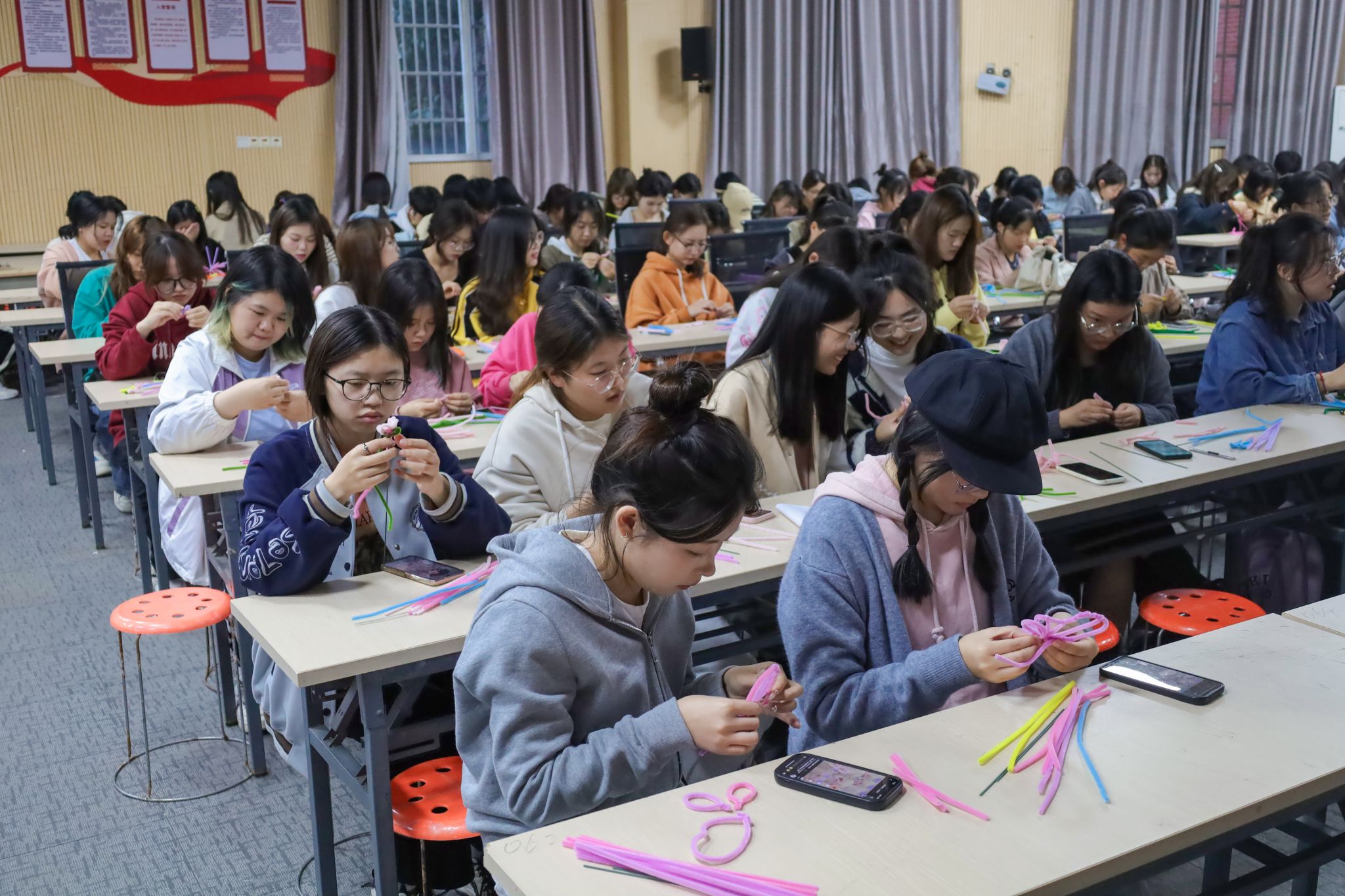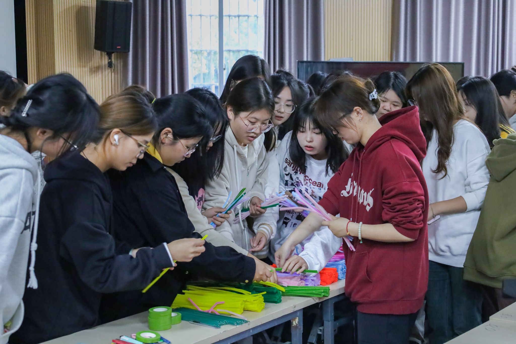 组织了一场别开生面的重阳节主题活动,130余名学生齐聚学院学术报告厅,手工制作扭扭棒花,等待将这份惊喜献给安庆市大观区十里铺乡敬老院的老人。