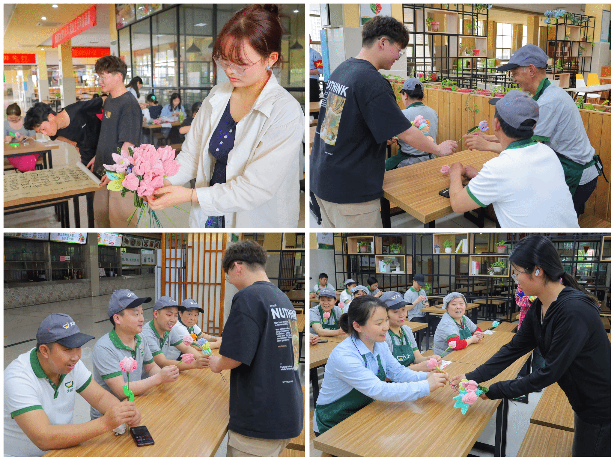 “平时,食堂的工作人员总是耐心处理我们的一切需求。粉色郁金香的花语是幸福,希望收到我所制作的这朵花的食堂工作人员能够一直幸福。”美术学专业2023(1)班的朱明宇表示,普通鲜花容易凋零,而扭扭棒花能够“永生”,希望通过这些亲手制作的花朵,食堂的工作人员们能更深切地感受到学生们的真诚心意。