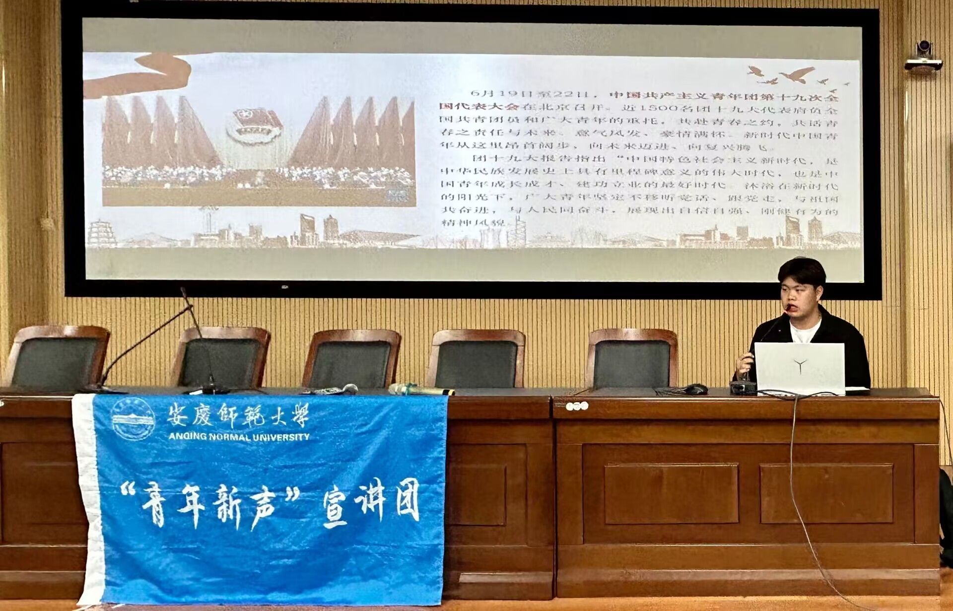 邀请马克思主义学院“青年新声”宣讲团为200余名学生带来了一场“新时代中国青年的使命和担当”宣讲活动。