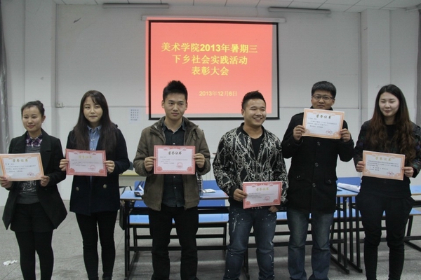 会上,今年“三下乡”社会实践团队代表做了交流发言。“美丽乡村墙体彩绘”实践队队长王宗海在说到:“参加三下乡社会实践,我们切身感受到在农村,农民物质生活水平提高了,农民的精神文明生活也更加丰富了,能将自己在学校学习到的专业知识为美好乡村建设服务,感觉很高兴,很有成就感。”由贺媛牵头的返乡社会实践团队也取得了较好的社会反响,她们实践团队回乡与社区居委会主动联系,和社区青年志愿者们一起,利用专业特色帮助留守儿童学习美术基础知识、为社区居民发送降暑药品和陪伴孤寡老人。她呼吁大家多多关注身边的儿童和老人,她说道:“在实践中我学到了很多在学校学不到的东西,不仅帮助了他人,而且内心充满了满足感和成就感。”一张张活动照片,真实而又亲切,激起了大家的共鸣,大家纷纷表示一定会按照要求,积极参加明年的三下乡社会实践活动。
