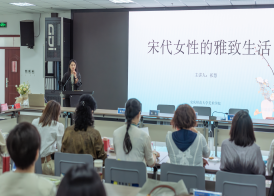 教师祁慧博士为来宾作“宋代女性的雅致生活的学术报告”。祁博士从绘画图像出发,以女性独特的视觉从服饰冠帽、清玩雅赏、起居环境、饮食用品、日常消遣方式等方面立体化、沉浸式感受了宋代女性的雅致生活。女企业家们全程被讲座吸引,听的津津有味,表示受益良多,并希望色情导航