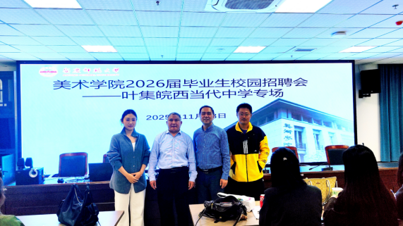 会上,金忠良首先对六安叶集皖西当代中学招聘宣讲团队的到访表示热烈欢迎。随后介绍了学院整体情况,还重点说明了 2026 届各专业毕业生的规模、专业优势及就业意向。他特别分享了往届校友在该校的工作发展现状,结合此次招聘的具体岗位需求,精准推介了相关专业的应届毕业生。